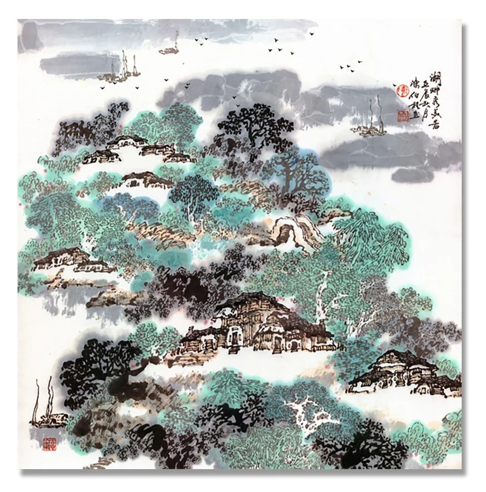 当然,这并不意味着当代中国山水画的创作只能墨守成规,停滞不前,毕竟我们是生活在一个多元化文化相互交融的时代,我们不能退却,应该去探索,去寻找新的表现形式,追求自己独特的艺术语言,追求 “古不乖时,今不同弊”的千年古训;追求一种“无法则大法”的艺术境界,追求我的“绘画里的自由王国”和与众不同的表现技巧。我学傅抱石的“皴法”;学黄宾虹的“中锋”用笔;学陆俨少的构图气势,将几位大师的精粹汲养过来,又将版画、漆画、水彩,以及民间绘画等诸多姐妹艺术融汇一体,以南方山水为题材,融合传统法度进行凝炼,探索出既属于自己的表现语言又张扬时代精神的绘画形式。